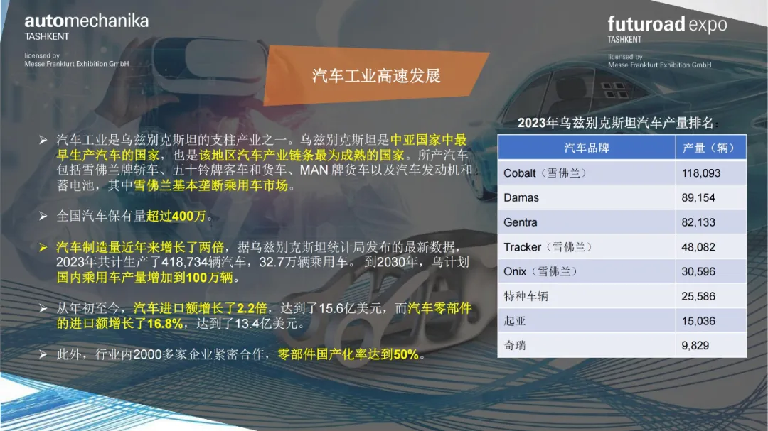 是乌兹别克斯坦唯一的行业性专业展会,展示了汽配行业的创新成果和技术。