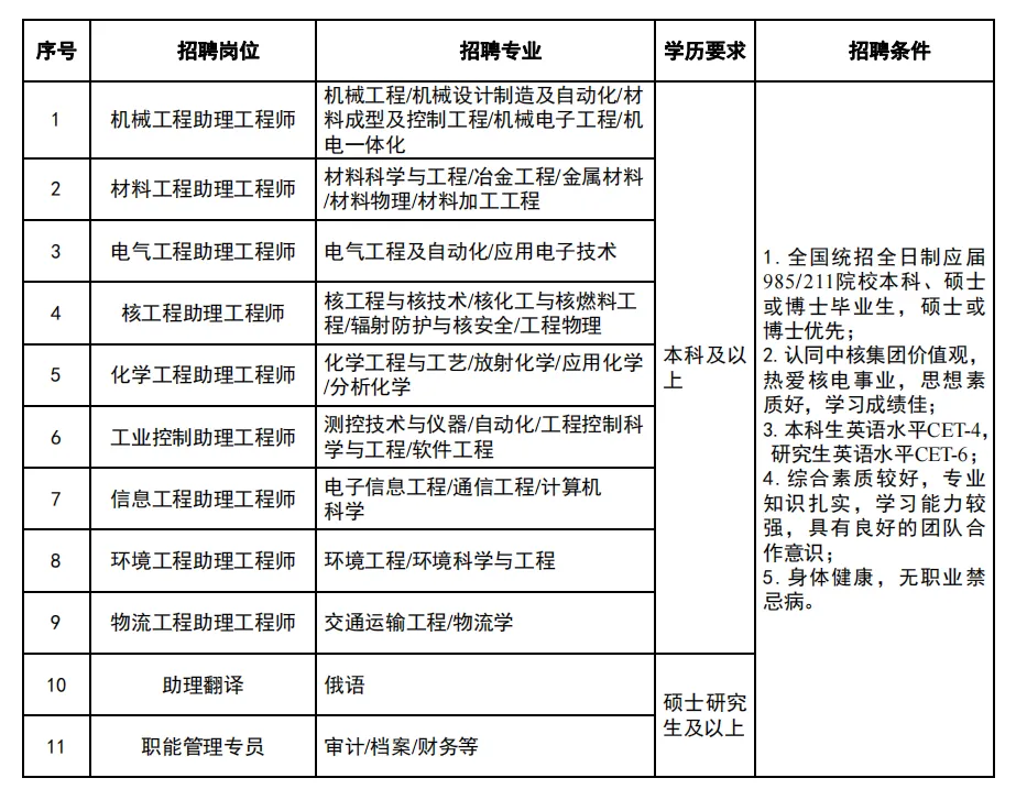 简历投递:“中核人才招聘网” https://cnnc.zhiye.com或公司招聘专用邮箱rsk143@163.com