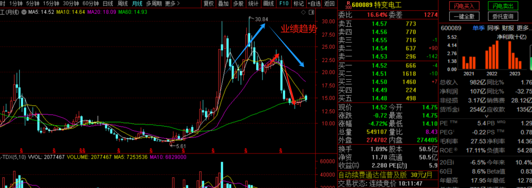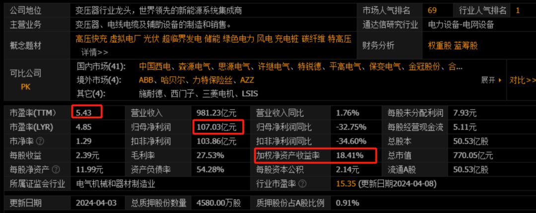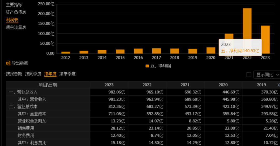 营业收入与利润情况:特变电工2023年的营业收入为9,812,348.37万元,相比上年的9,639,395.88万元略有增长,增长率为1.79%。然而,归属于上市公司股东的净利润为1,070,271.07万元,较上年下降了32.75%。这表明虽然公司的总收入有所增加,但净利润却出现了较大幅度的下降。 营业成本与费用控制:公司的营业成本为7,110,771.07万元,较上年增长了19.94%。这一增长幅度高于营业收入的增长,导致了公司毛利率的下降。同时,销售费用、管理费用和研发费用均有所增加,其中财务费用因外币汇率波动而显著增加了41.91%。 业务这么好的公司营收没有减少,只是成本增加——成本增加是否带来第二年的业绩扩展呢?2023年美元加息导知财务费用增加,2024年美元降息是否就是确定性的盈利增长点——而在业绩下滑的2023年后,2024年的利润增长将是大概率事件!