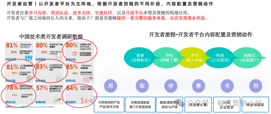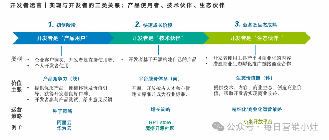 总而言之,在当今时代,众多科技企业或B2B企业高度重视并积极布局开发者生态运营,以开发者社区、平台为中心,根据不同阶段制定内容配置和营销策略,充分发挥自身运营优势,俘获用户芳心,从而最大限度地提升商业价值,为企业的长足发展筑造稳固根基。