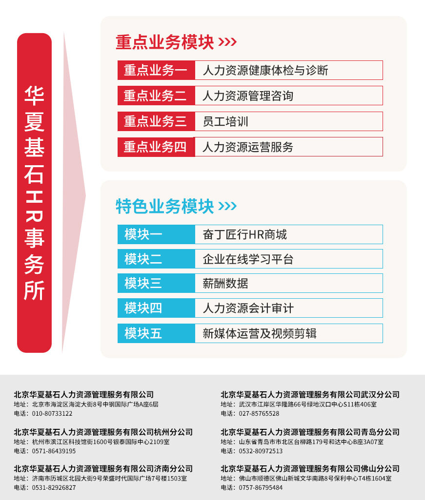 华夏基石HR事务所为各类人才及企业提供线下及线上的专业课程服务,涵盖综合管理、人力资源、培训技术、财务管理、市场营销、思维技术等多个领域。