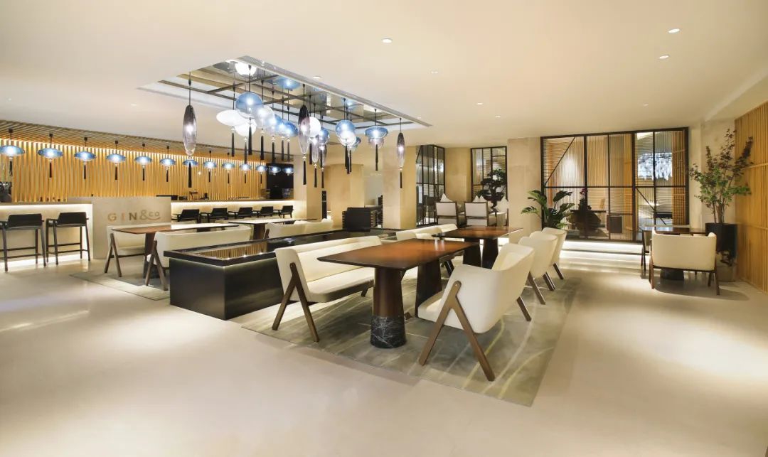 招牌餐厅Gin&Co Bar从空间设计到装饰配件都带着低调与朴素的高级感,传递一种安静的禅意。餐厅共设有70个座位,布局错落;宾客可在此区域怡情就餐,尽享安然。早餐设定以中、西、日三种定制能量元气套餐为特点加半自助餐形式,为客人提供健康丰富的多样性选择。餐厅的特色是日间供应二十种日式居酒屋风格的小食,精巧美味的小点从前菜到花样繁多的沙拉,再到精致入味的煮物及甜品,每一口都是惊喜满足。顾名思义,Gin&Co Bar绝对是金酒迷们心中的圣地。不论只是匆匆来访畅饮一杯,还是整晚品鉴沉醉其中,这里都是一个完美的地点之选。酒店配套逾260平米的暻阁空间,包括开放式综合多功能厅“暻空”和活动休闲空间“暻隅”。