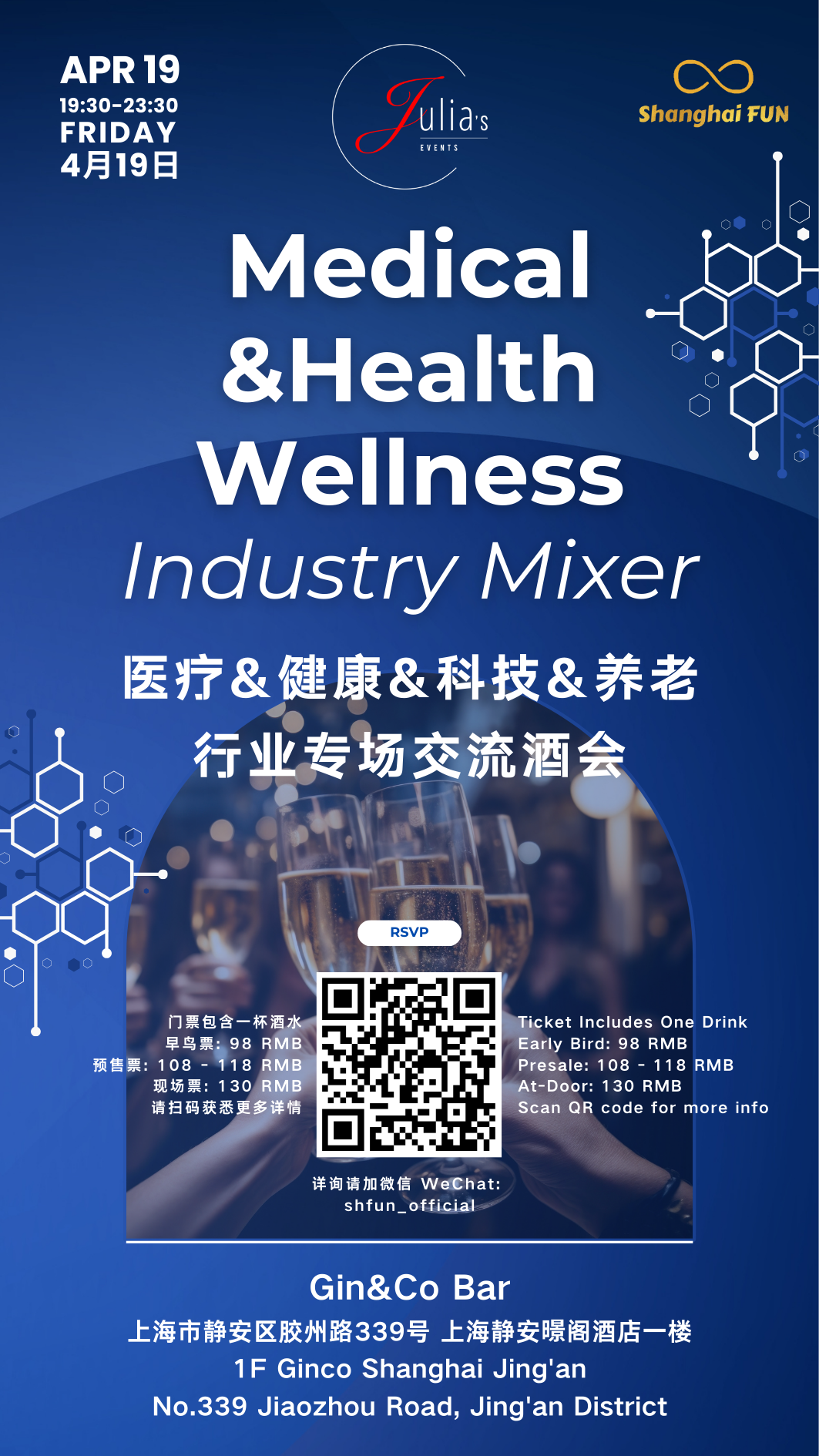 Join us on Friday, April 18th for a business networking event of Premium Network Series: Medical, Health & Wellness Industry Mixer at Gin&Co Bar in Jing'an District!