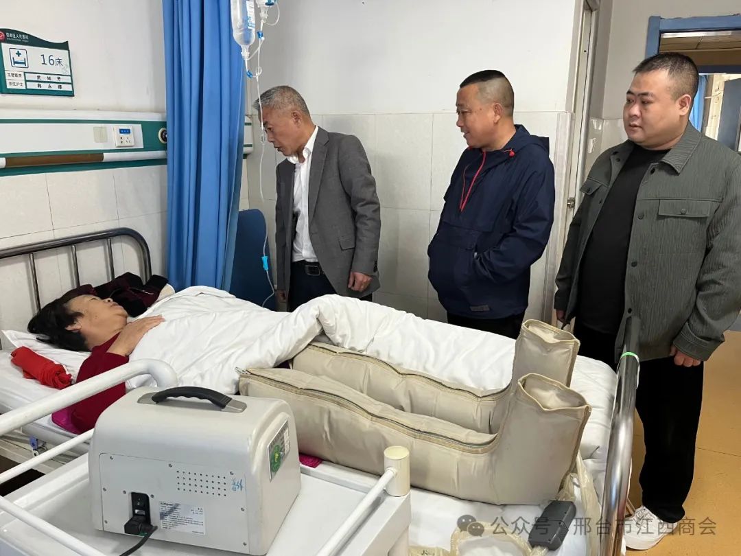 4月9日上午,邢台市江西商会会长高国庆、执行会长田宗福、监事会主席黄鹤超一行,专程信都区人民医院,看望因病住院的秘书长李友明岳母,祝其早日康复,并送去慰问品。