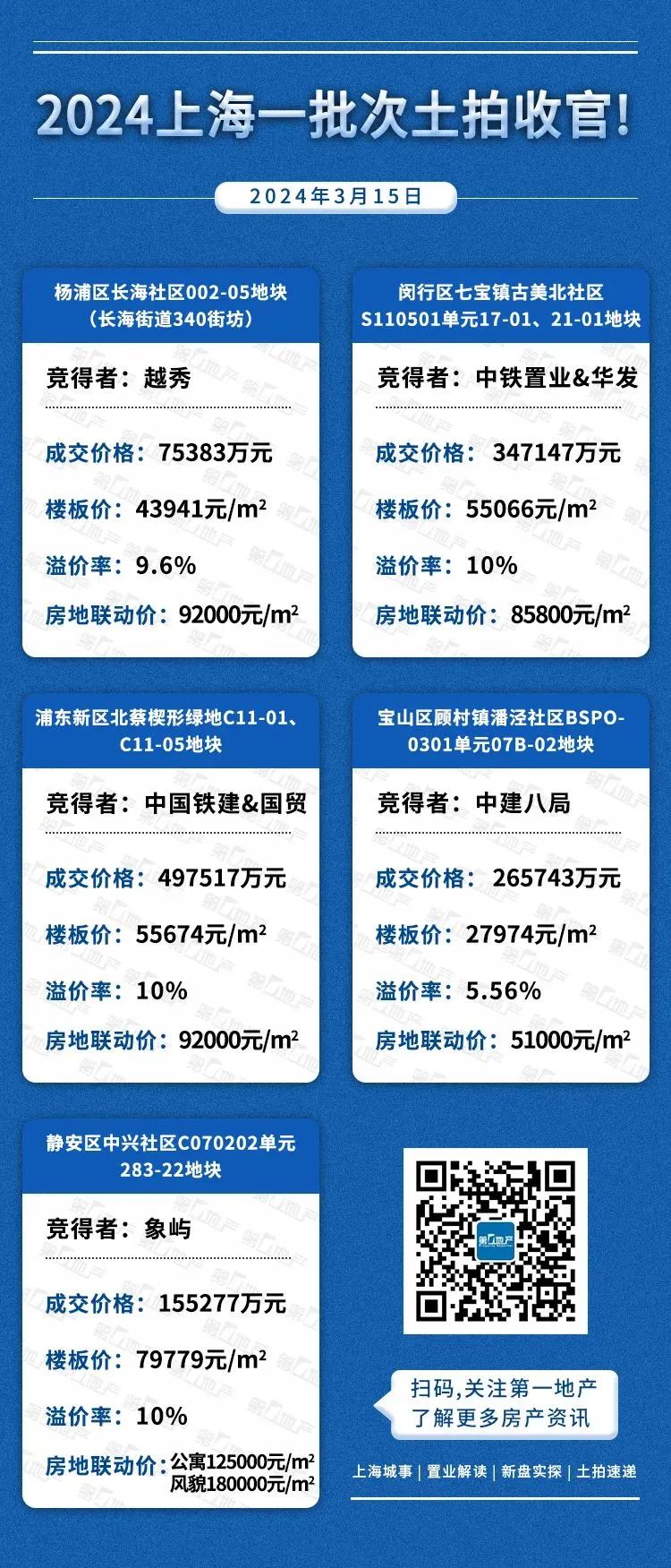 2024年第一轮5宗宅地已于3月15日全部成交。