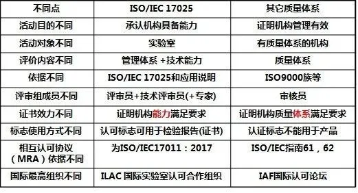 小编特意制作了如下的对比表来加深大家对“实验室认可”这个概念的理解: