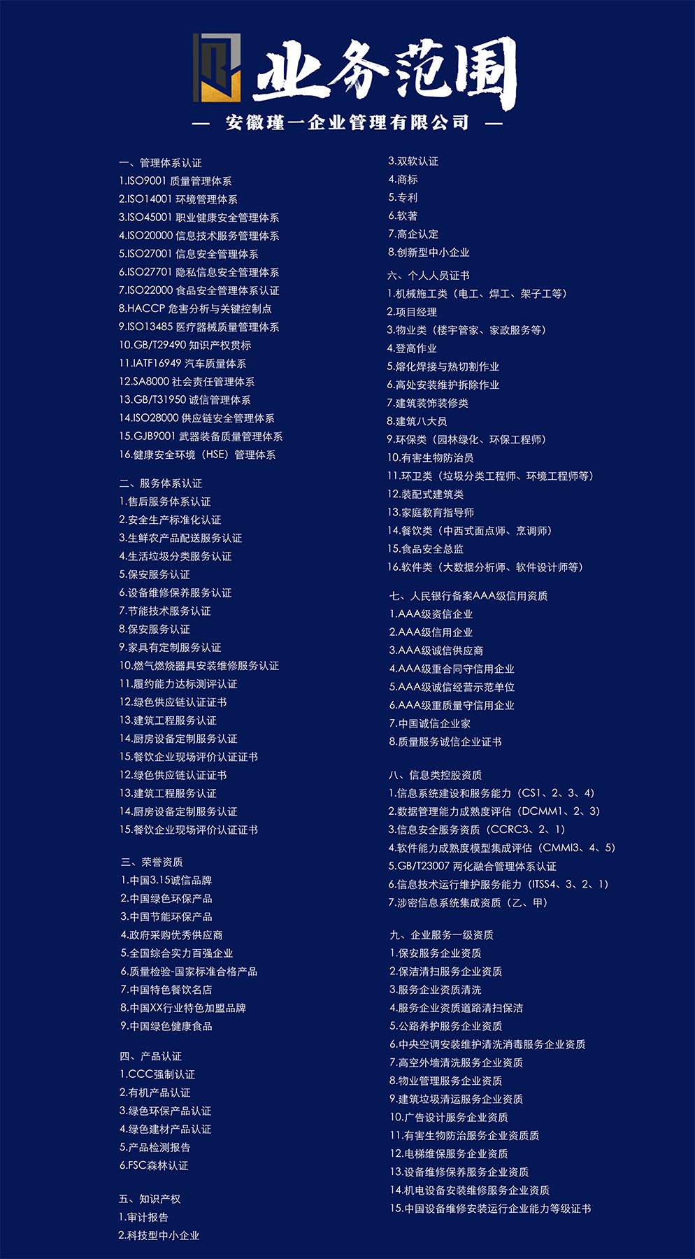 总的来说,无论企业大小,无论什么行业,目前所有企业都适合做ISO9001认证,其适用范围面很广,适合任何的行业,亦是所有企业发展壮大的基础、根基。