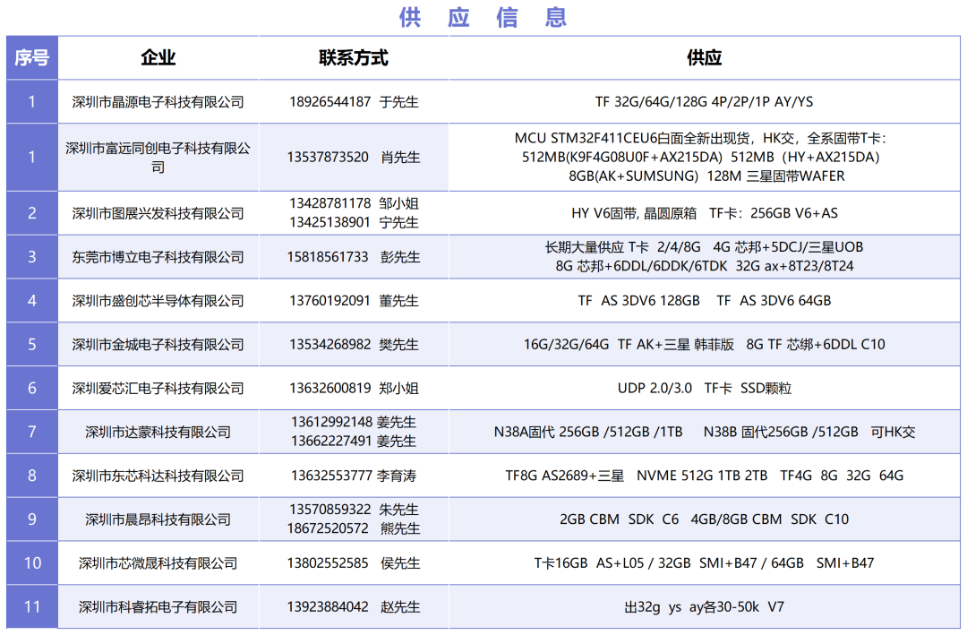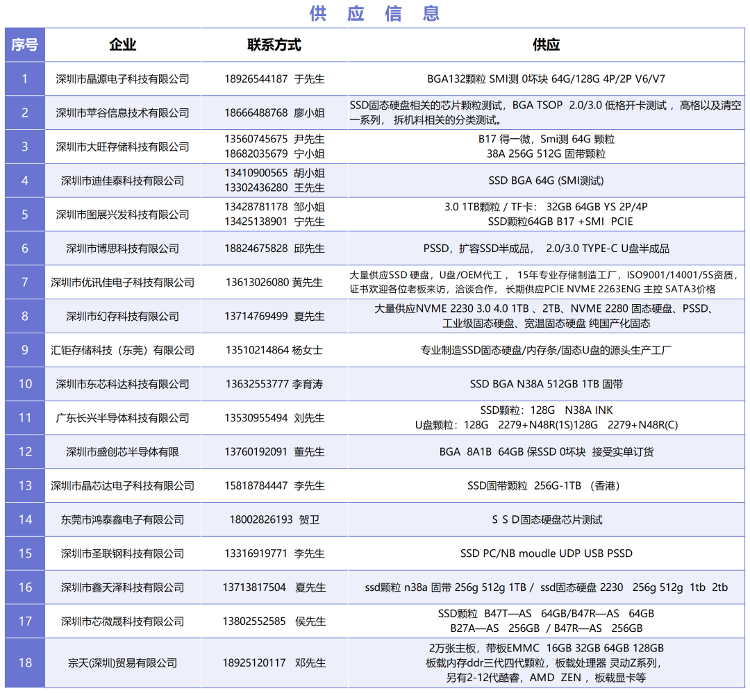 (4)供应: 大量供应SSD 硬盘,TF卡,U盘/OEM代工 、 专业存储制造工厂,提供BGA颗粒,TF卡,UDP封装测试。