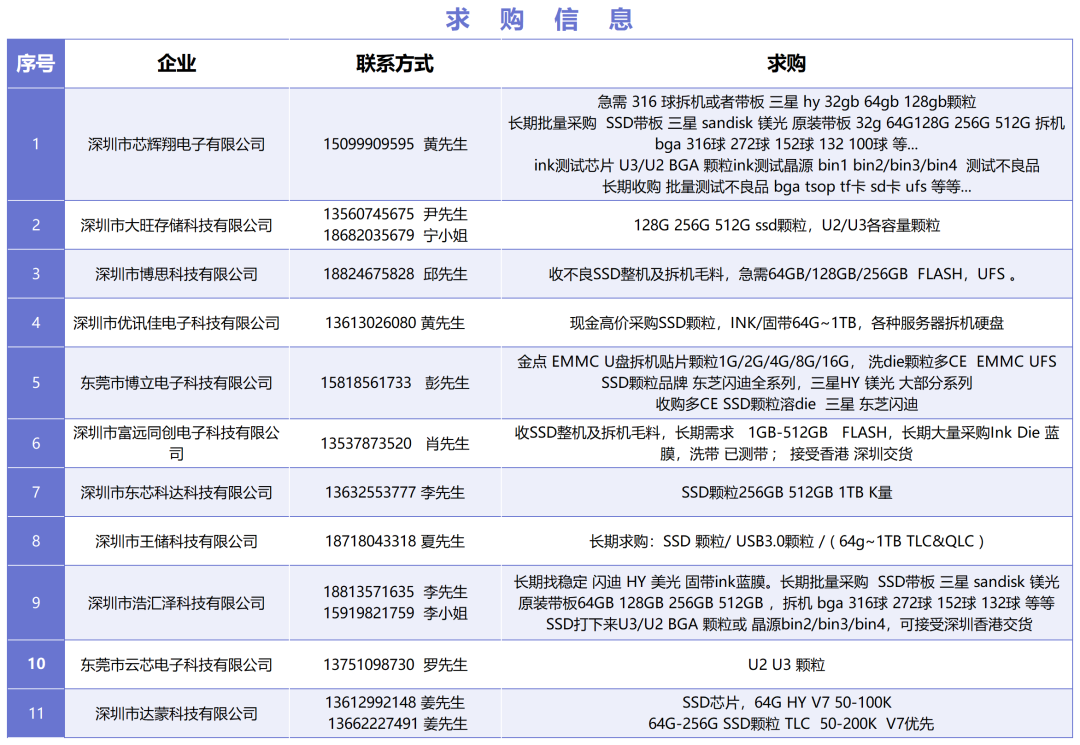 (1)求购:收不良SSD整机及拆机毛料,长期需求128GB/256GB/512GB FLASH,UFS
