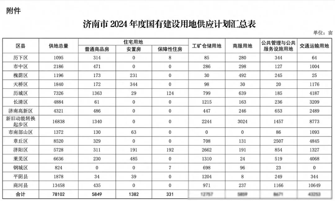 近日,济南市自然资源和规划局正式发布了《济南市2024年度国有建设用地供应计划》,为市民们描绘出了一幅生动的城市发展蓝图。这份计划不仅详细列出了土地供应的总量和各类用地的比例,更揭示了未来济南房地产市场的潜在机遇。