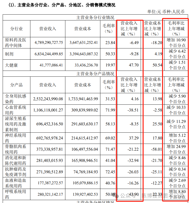 2、集采影响:公司制剂板块实现销售收入68.34亿元,比上年同期下降9.28%,占本期营业收入的56.62%。第八批全国药品集中采购中标产品于2022年11月开始执行供货,公司重点产品硝苯地平控释片2023年量价齐跌,销量同比下降22.44%,受此影响公司心血管系统用药销售收入同比下降38.51%。