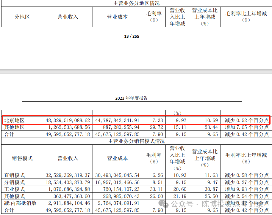 2、截至2023年末,本集團醫藥分銷板塊收入佔比同比上升0.19個百分點,達到 71.44%;器械分銷板塊收入佔比同比微降0.09個百分點,達到21.09%;醫藥零售板塊收 入佔比較同期保持不變,為5.78%。由於醫藥分銷在報告期內增速較快,且監管趨勢促 使的業態結構調整優化,報告期內,本集團錄得的毛利率水平較2022年度同比下降了 0.46個百分點,至8.13%。但得益於較好的費用管控水平及盤活存量資產,本集團的淨 利潤和歸母淨利潤增速高於毛利增長水平,全年實現淨利潤人民幣15,009.83百萬元,同 比增長4.63% ,歸母淨利潤達到人民幣9,053.76百萬元,同比增長6.19%
