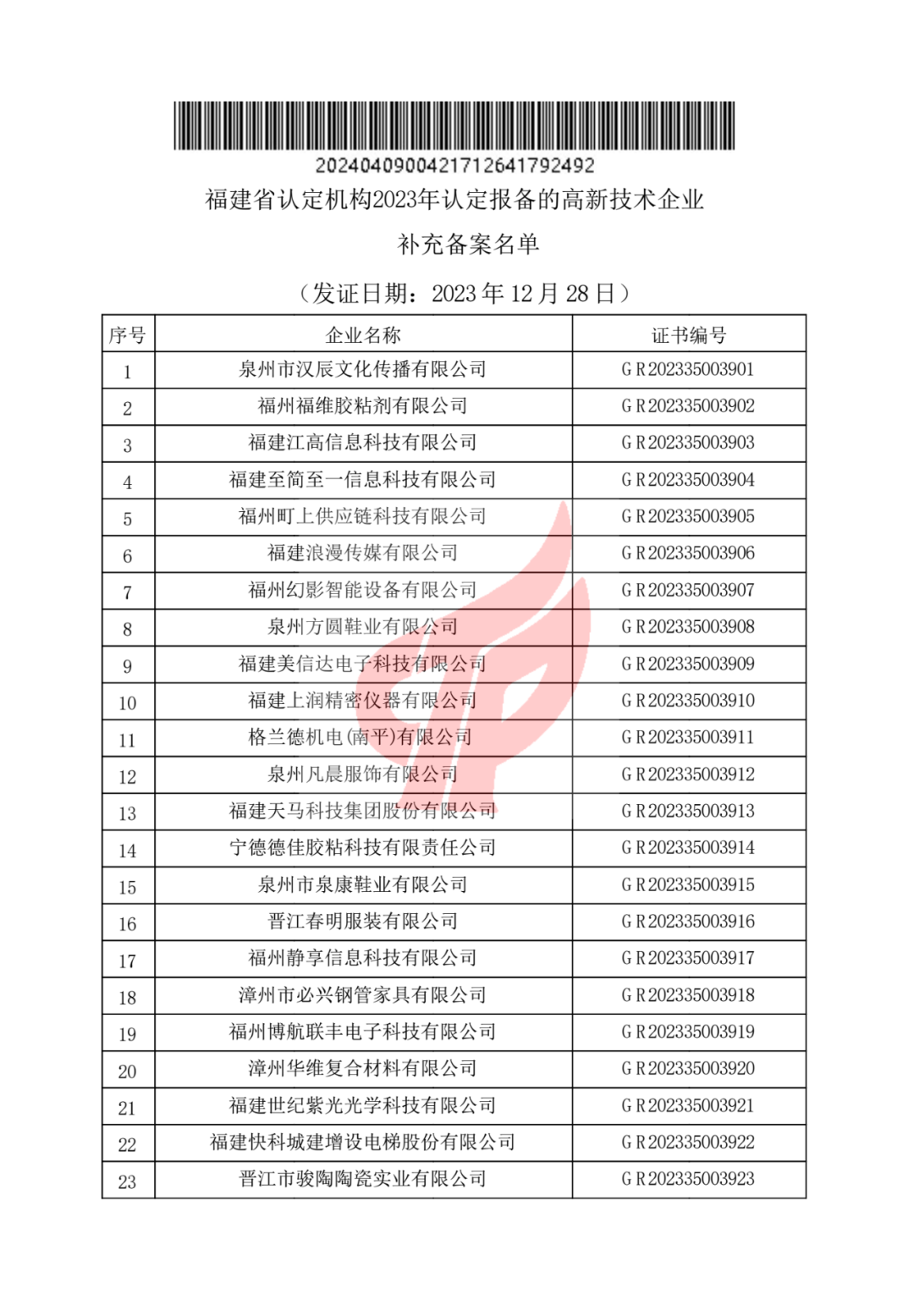 4月9日,全国高新技术企业认定管理工作领导小组办公室对福建省认定机构2023年认定报备的高新技术企业进行补充备案公告。福建省约翰丹尼科技有限公司和福建泉州市辉陶卫浴有限公司2家南安企业进入补充备案名单。2023年度,南安市共有164家企业通过国家高新技术企业认定,认定通过率高达94.25%,全市有效期内的高企达406家,同比增长32.25%,净增99家。