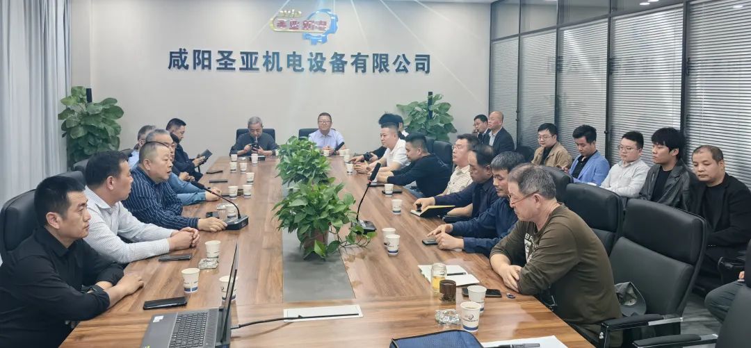 在分别现场观摩了商会监事长单位、咸阳盛宏重型汽车零部件制造有限公司,副会长单位、咸阳圣亚机电设备有限公司生产车间之后,在圣亚机电一楼会议室召开了座谈交流会。