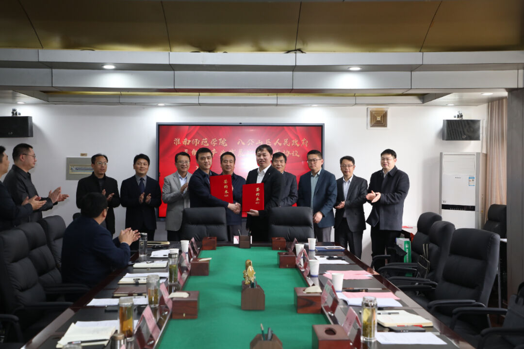4月10日上午,八公山区人民政府与淮南师范学院签订豆制品产业发展战略合作协议。淮南师范学院校党委副书记、校长程刚,区委书记朱杰,区委副书记、区长李旭,副区长彭大晶等出席签约仪式。