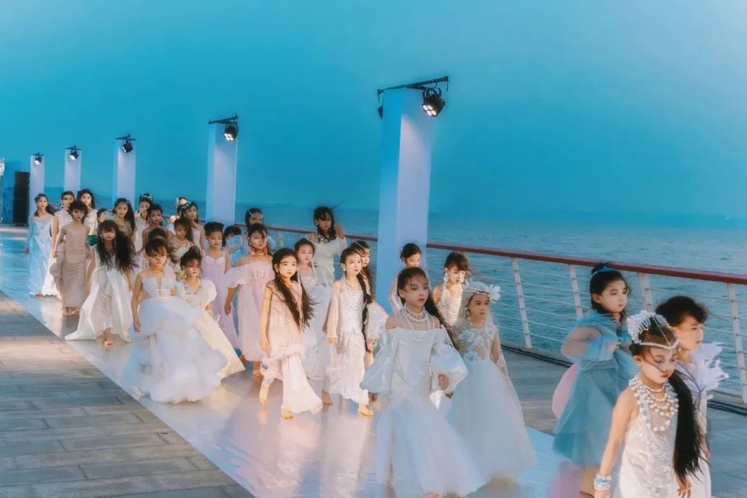 2023年12月31日,XIAYUMO 2024 早春礼服秀以环东浪漫线的迷人夜景为背景,将丁坝打造为秀道,模特们手捧爱的鲜花,穿着定制设计悠然登场,呼应传递的母亲与孩子的命中注定。