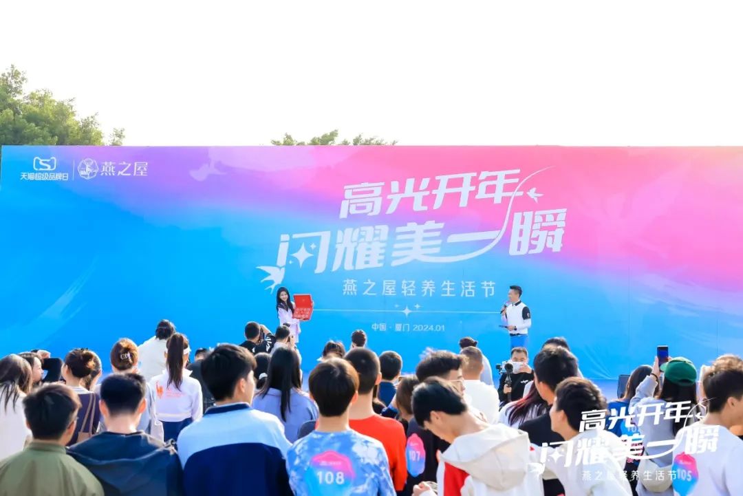 2024年1月12日,燕之屋携手天猫超级品牌日打造2024“高光开年,闪耀美一瞬”轻养生活节,此活动于美峰体育公园中央广场落地,众多参赛跑者集结环东浪漫线,以美好高光时刻打开新的一年。