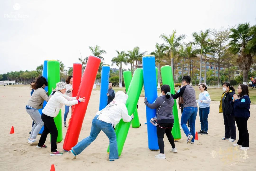 皮尔法伯公司在沙滩上进行“战争堡垒”主题团建活动,主要将乐高墙道具作为此团建的项目载体,同时融入更多的互动玩法增加了活动的趣味性,活动中既有团队竞技,又体现了One Team 的精神内核。
