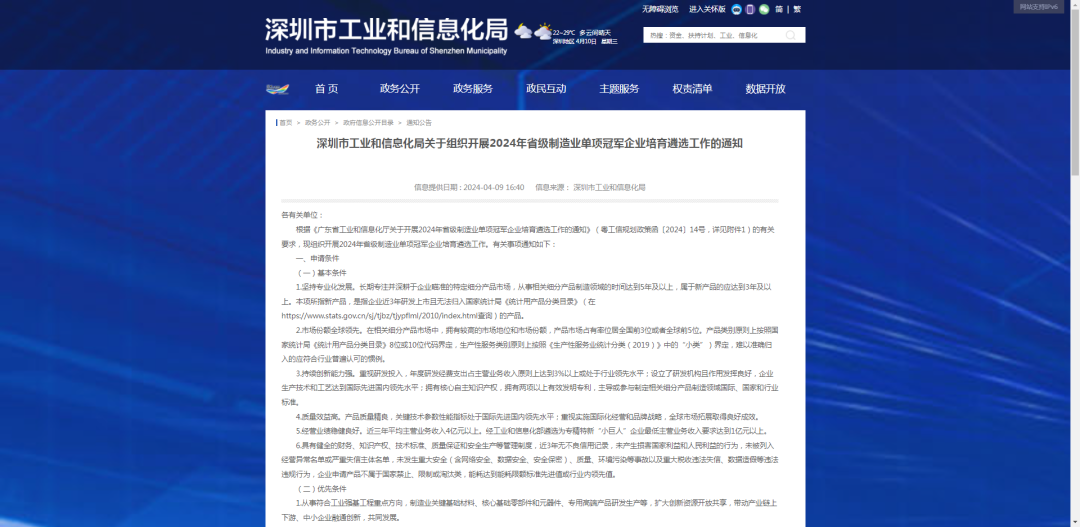 为深入贯彻党中央、国务院关于激发市场主体活力、大力培育优质企业的决策部署,以及《广东省制造业高质量发展促进条例》有关规定,坚持制造业当家,着力打造一批具有国际竞争力的制造业单项冠军企业,带动县域产业高质量发展,现组织开展2024年省级制造业单项冠军企业培育遴选。