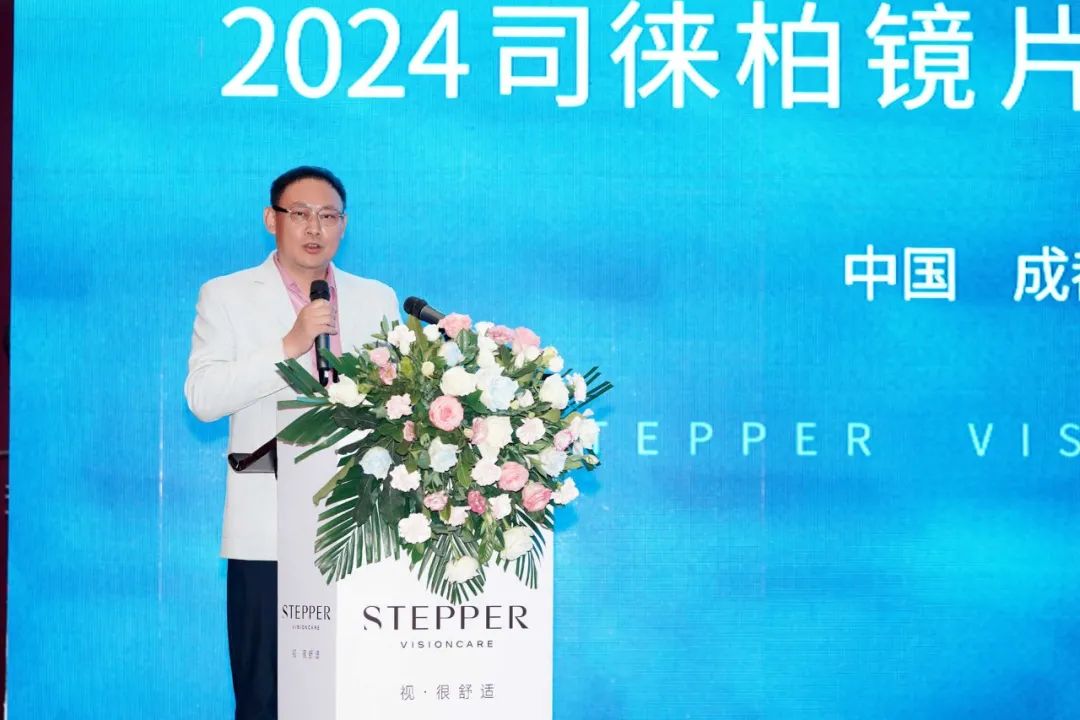 司徕柏镜片副总经理閤成武分享了司徕柏镜片的品牌理念、产品特点以及未来发展规划。他表示,司徕柏镜片拥有清晰的品牌定位和丰富的全球视光资源,期待与新老客户朋友一起努力,为消费者带来更清晰、更舒适的视觉体验。