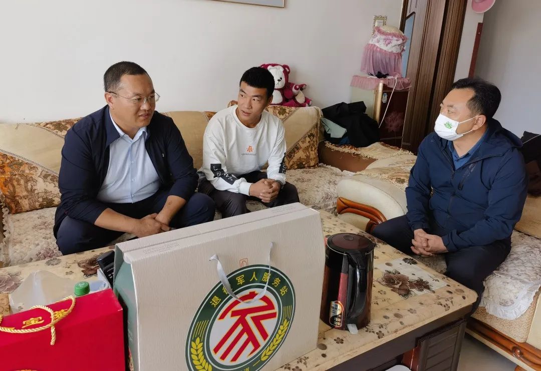 街道有3名退伍军人正式告别军营,光荣返乡, 中秋与国庆双节临近,为了进一步做好拥军爱军工作,同时表达对退役军人的关心及节日的问候,纺织街道退役军人服务站举行返乡退役军人迎国庆庆中秋上门慰问活动。