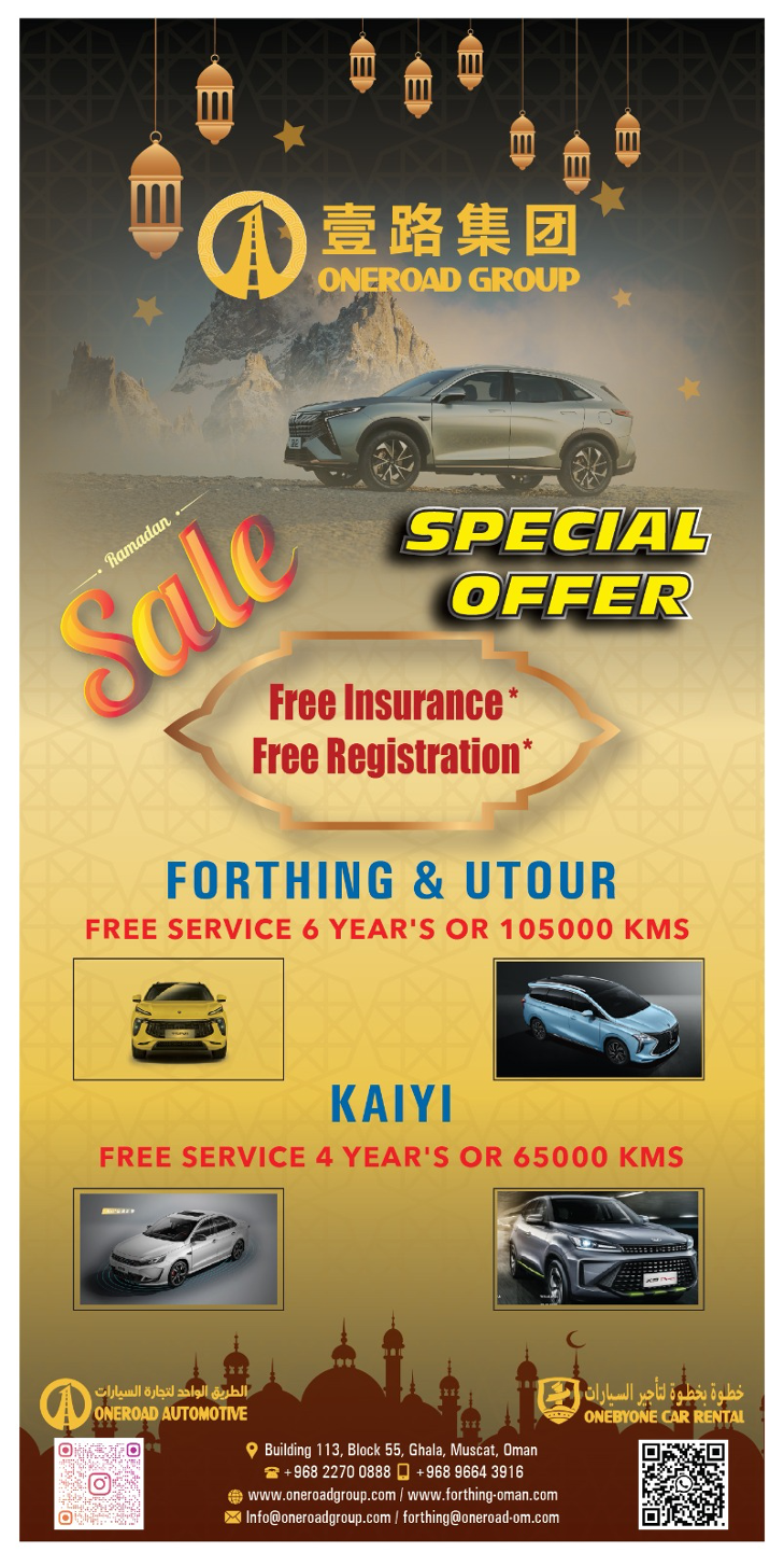 在这个吉庆的斋月带来的不仅是心灵的洗涤,壹路集团汽车贸易与租赁也为您在炎炎夏日带来了一场清凉大促销!无论您是想拥有自己的座驾还是租一辆车,壹路集团为您提供一系列惊喜特惠,让您在阿曼拥有最便捷舒适的出行方式!