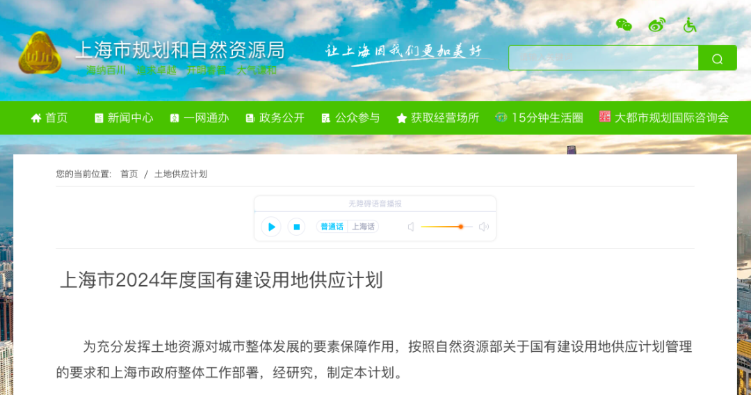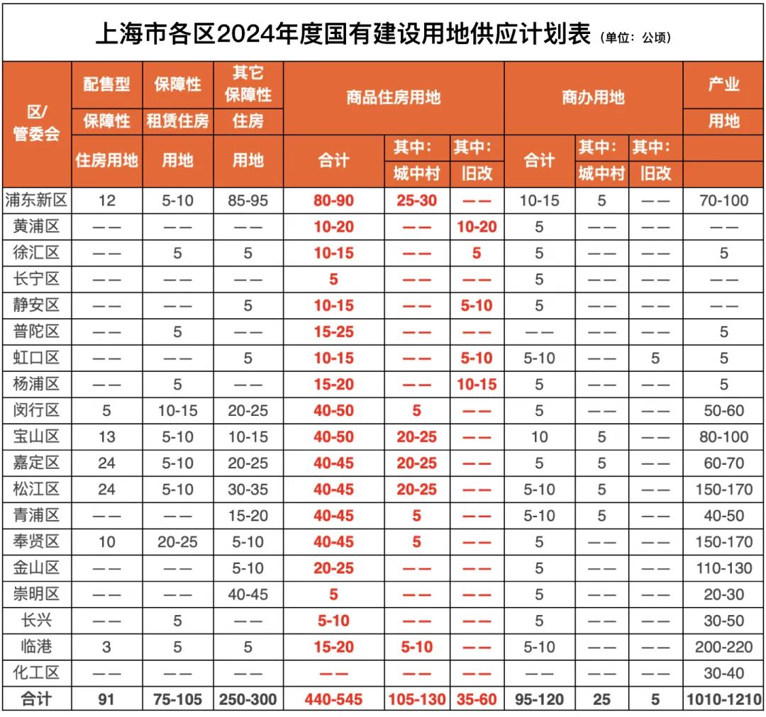 4月3日,上海市规划和自然资源局正式发布了《上海市2024年度国有建设用地供应计划》。