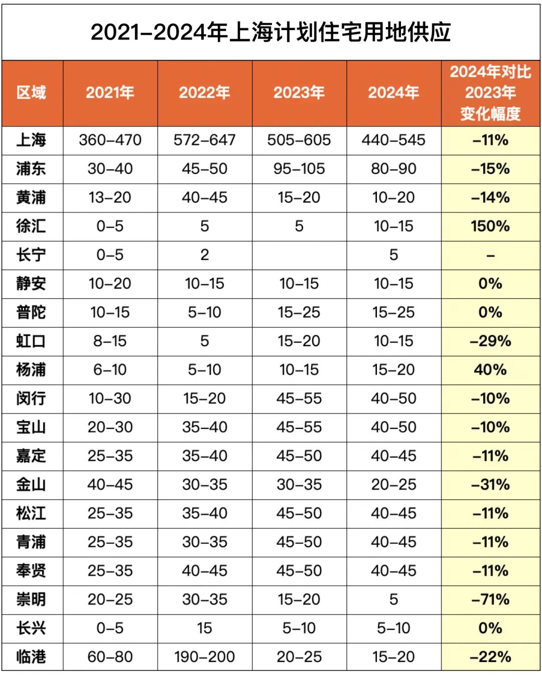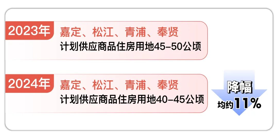 整体来看,对比2023年,2024年上海商品住房用地供应缩减了约11%,基本维持了较高供应水平,市场仍然是“稳”字当头!