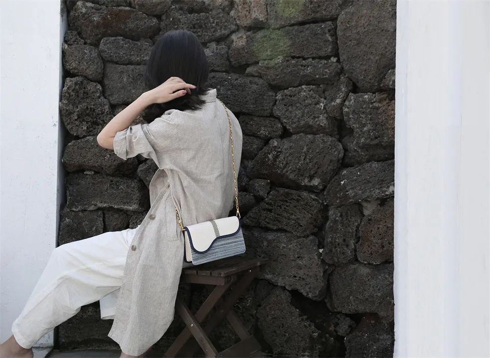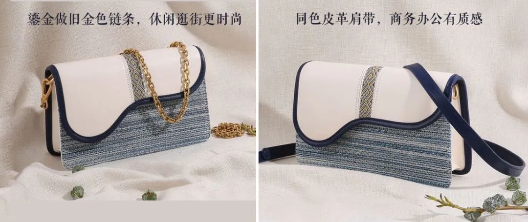特别种草这款小方包!拿到包的时候,我的感受就是:手艺人的认真,从打开包装的瞬间就能深刻体会到。我起初还担心侗布这样过于传统的民族风手工艺,会不会很难搭配衣服。但拿到手后,却发现,它真的出乎意料的好搭。方方正正的经典包款,不张扬、不夸张,散发内敛气质却和大衣相得益彰,而且容量也不小~白色牛皮翻盖,纯净素雅,有种小香风的感觉,摸起来手感细腻顺滑,光静放着,就给人潇洒的感觉。提花厚织布的内里,厚实有质感,衬得整个包包方正感十足,有型又耐用。而且这种清新的复古蓝,真的太出挑了,搭配小白裙什么的,让整个look,看起来都活泼很多。斜背在肩上,包包底部的线条,刚好在腰线上,衬出腰和腿的比例,线条好看,还很显高!包带为54cm做旧感金色链条,复古有质感,附赠同色牛皮肩带(50cm可调节),随场合随意切换!关键发现好物性价比很棒,6款包大家可以根据自己的需求来选,而且满199减20,满599减80,满999减120,性价比真的是很合适发现好物,更多品牌折扣