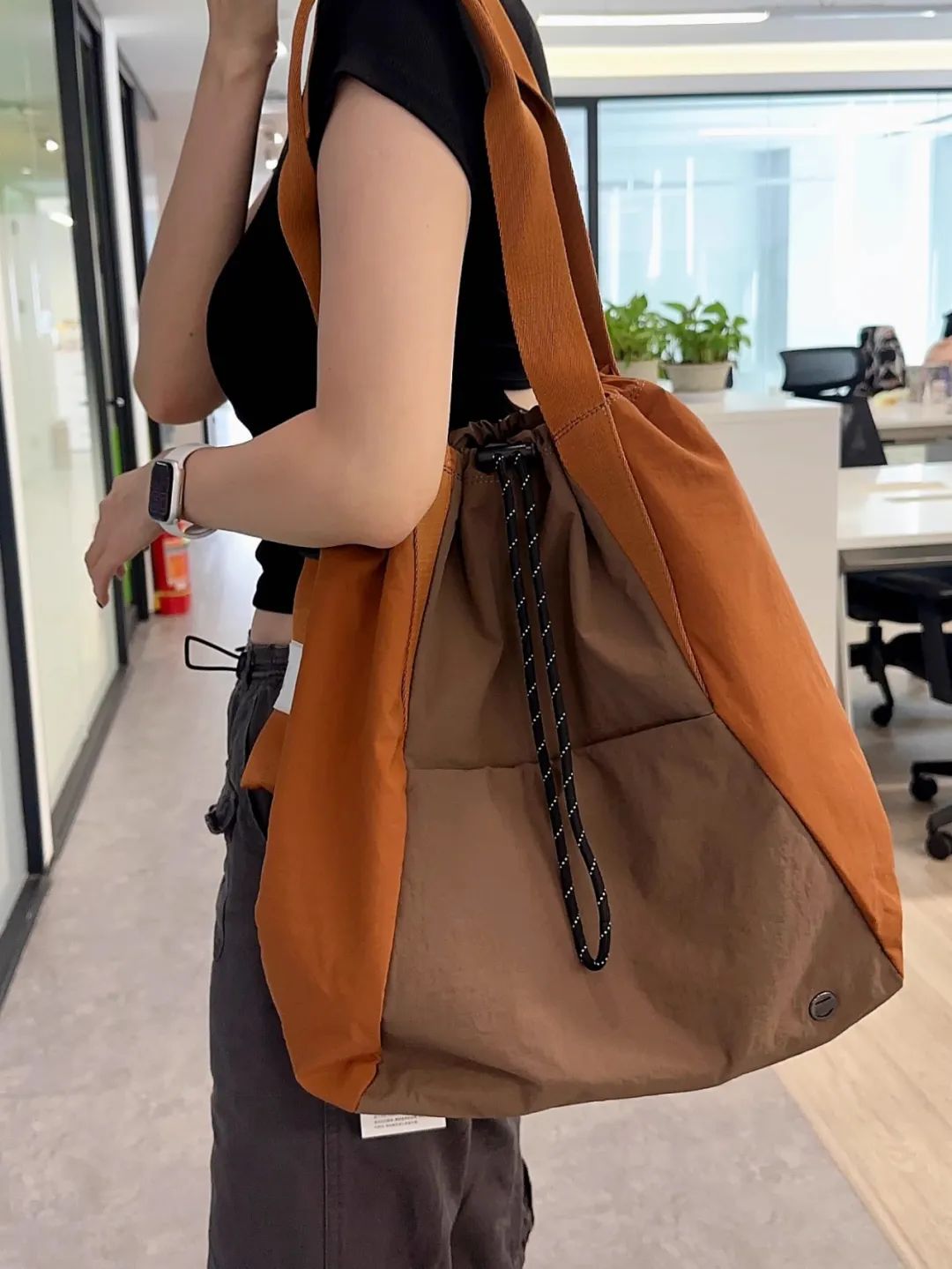 这款大包放13寸的电脑都绰绰有余,如果出门遛娃,水杯、简餐、纸巾....轻便又能装;特意在包口设计了扣子,扣起来很美观