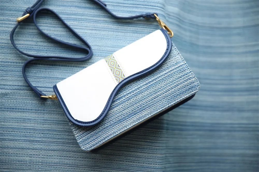 非遗侗族手织布牛皮包