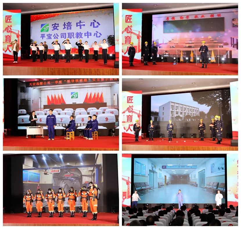 舞台剧演出在公司选送的《安全第一 健康无价—— 一名煤矿大学生的嬗变》中拉开帷幕,随后,十一矿《共筑安全 你我同行——压风自救实操情景演示》、天宏选煤《“蒲公英”行动,点亮安全星空——特色安全警示教育分享》、一矿《“救”在身边 护佑安全——自救器“盲戴”实操情景演示》、救护大队《培育新时代逆行者,用忠诚守护安全蓝天——应急救援实操情景演示》、十矿和勘探工程处合作的快闪剧《十五小时》相继登场,一幕幕演绎紧扣安全主题,形象生动地从安全行为教育、应急处置、紧急救援等多方面多角度诠释了安全的重要性,引导广大干部职工深刻领会安全生产的真谛,时刻做到居安思危、警钟长鸣,立足本职岗位,抓实抓细各项安全生产工作,保障安全生产稳定。