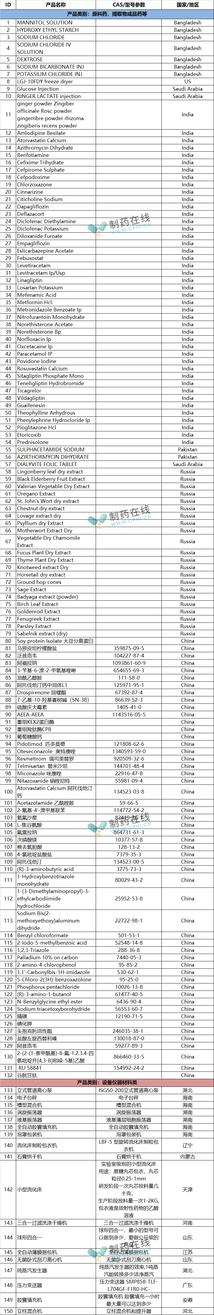 求购 | 制药行业原料与设备仪器采购清单(04.10)