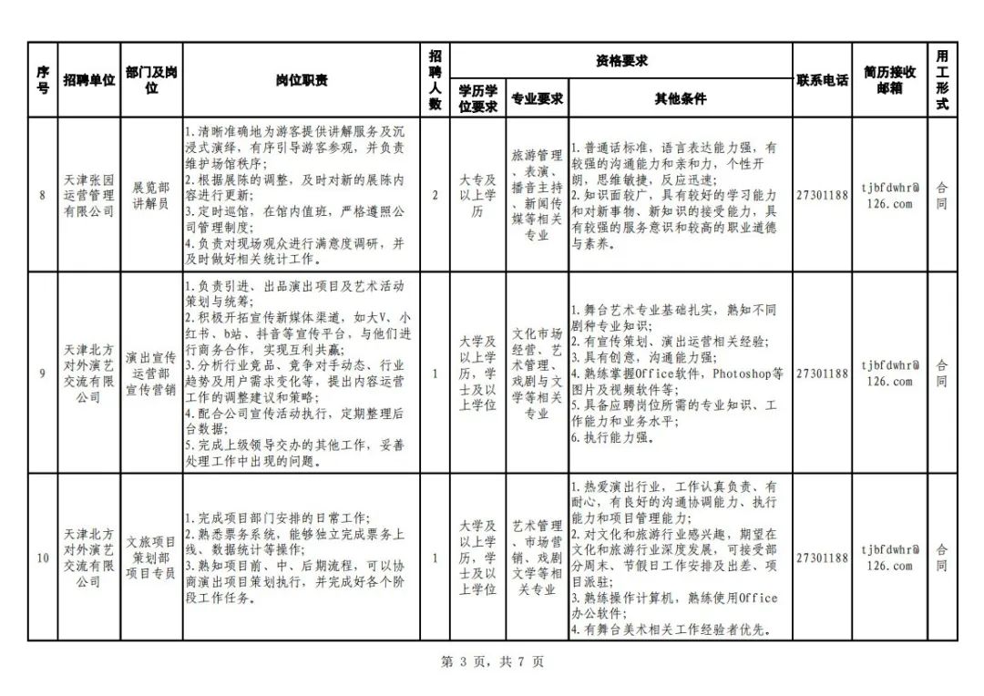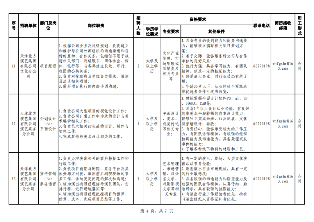 10. 天津北方演艺集团有限公司文化分公司项目经理2名;