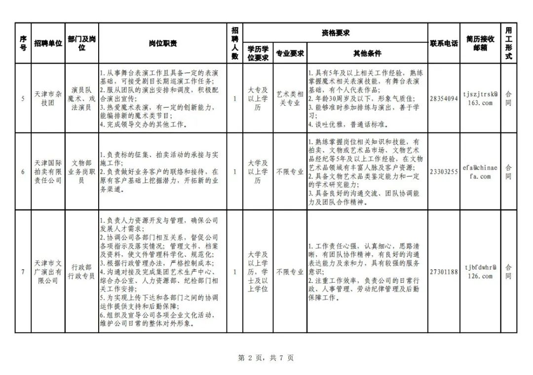 9. 天津北方对外演艺交流公司项目专员1名,宣传运营专员1名;