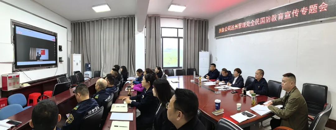 本次全民国防教育系列活动以“三会一课”、主题党日、科室会、站(队)务会、班组会为载体,以主题党课、读书分享会、观看国防教育视频、组织线上趣味抢答等方式,依托本地国防教育资源等多形式广泛开展国防教育、普及国防知识。充分运用川东公司网站、新媒体等宣传阵地,充分营造全民国防教育宣传宣讲浓厚氛围。