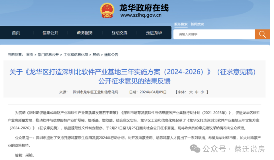 4月9日《龙华区打造深圳北软件产业基地三年实施方案(2024—2026)(征求意见稿)》(以下简称《实施方案(征求意见稿)》)对外征求意见。