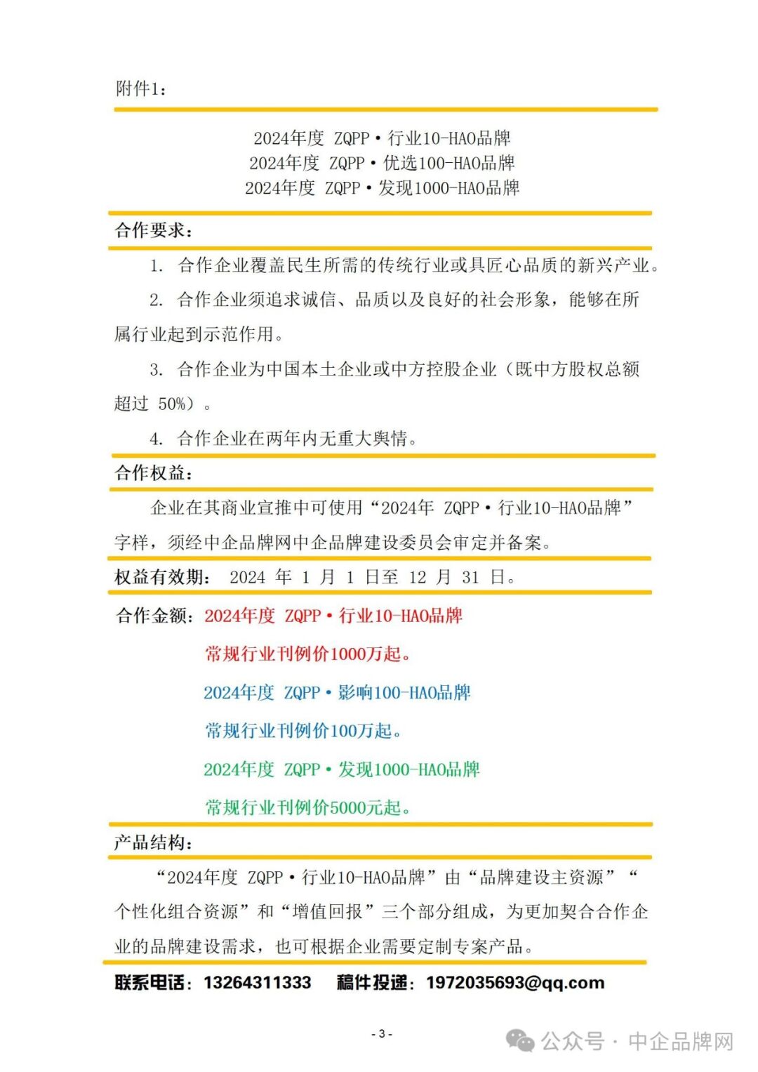 企业在其商业宣推中可使用“2024年 ZQPP·行业10-HAO品牌”字样,须经中企品牌网中企品牌建设委员会审定并备案。