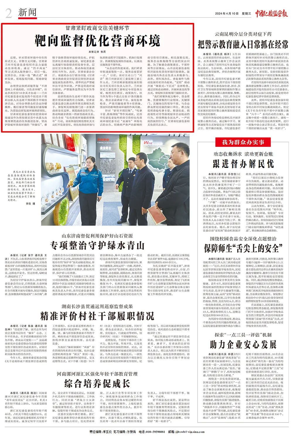 “我们将聚焦权力集中、资金密集、资源富集的行业领域,关键部门、关键岗位的领导干部,与企业群众密切关联的窗口单位,着力发现和查处吃拿卡要、推诿扯皮、搞歧视性对待等漠视侵害企业权益的行为,持续释放全面从严、一严到底的强烈信号。”甘肃省纪委监委相关负责同志表示。
