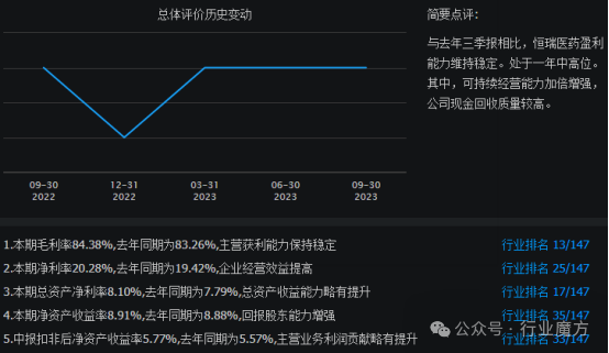 与2022年3季报相比,2023年3季报,恒瑞医药盈利能力维持稳定。处于一年中高位。其中,可持续经营能力加倍增强,公司现金回收质量较高。