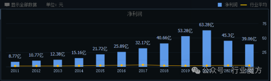 2011-2022年,由于恒瑞医药高毛利药物需求的大幅增长,恒瑞医药公司税后净利润增长幅度较大(2020-2022年,受集采影响,净利润有所回落),从2011年的8.77亿元增长到2022年的37.06亿元,增加了322%(略低于营收增长,主要为集采降价影响),增长幅度较大。