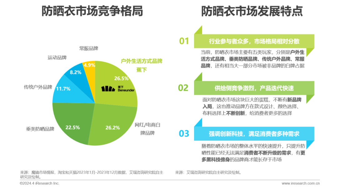 防晒衣市场供给侧的竞争多元化,蕉下品牌防晒衣市占率达26.5%