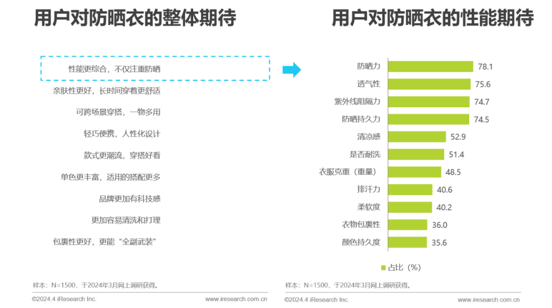 性能更综合,不仅仅注重防晒成为消费者对防晒衣的首要期待