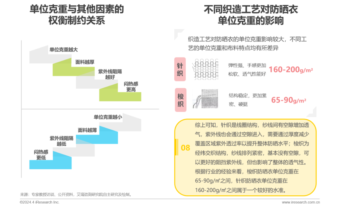 多项指标均需权衡,75-190g/m²是满足防晒、透气、轻便诉求的结果
