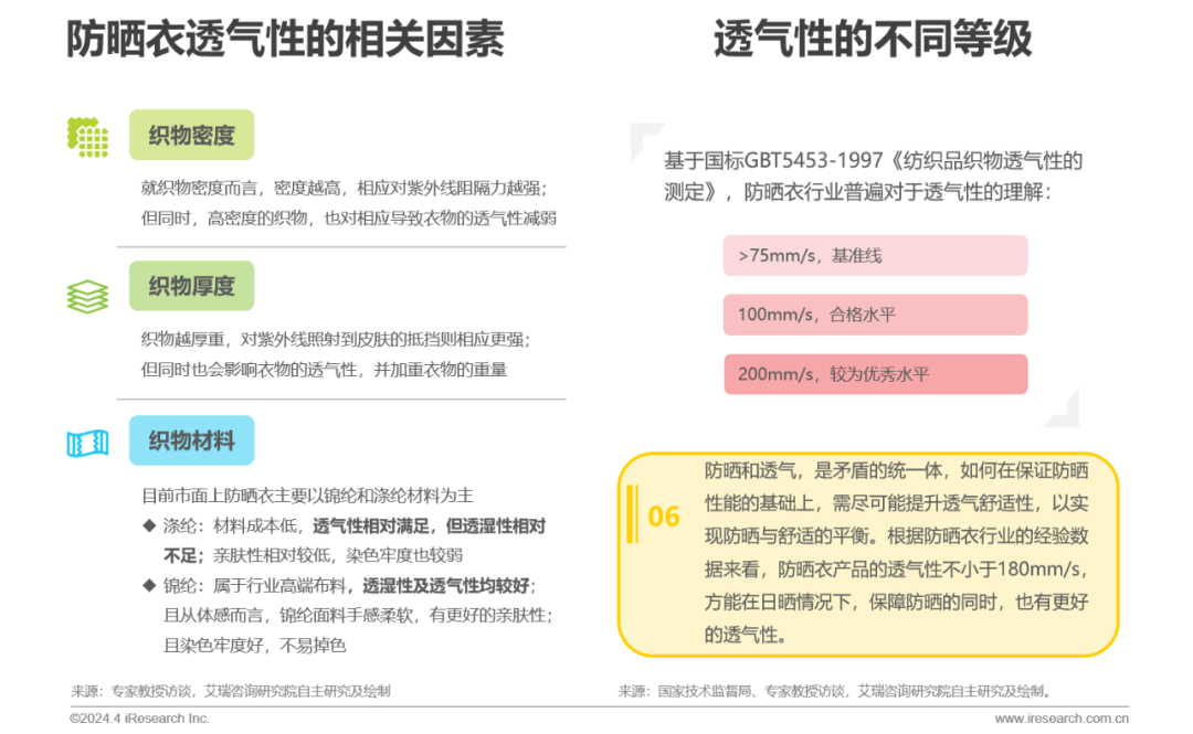 透气性达到180mm/s,才能在防晒的同时保证穿着不闷热
