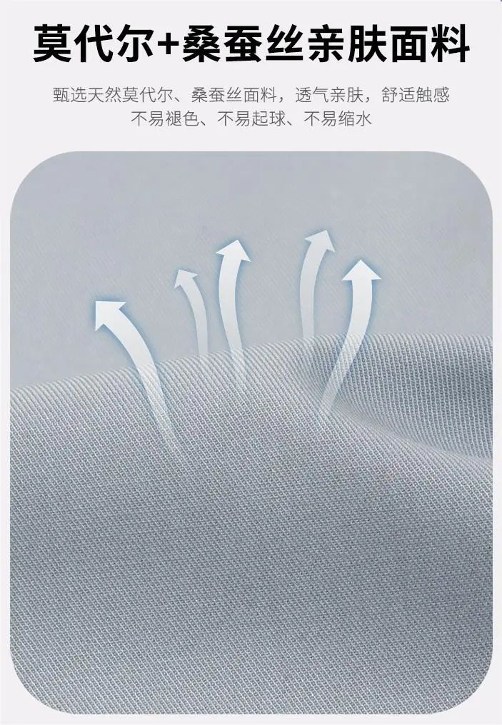 集真丝+纯棉+莫代尔的优点于一身,无可挑剔。
