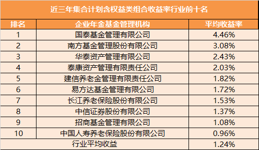 近三年集合含权行业平均为1.24%,排名前三的为国泰基金、南方基金、华泰资产。