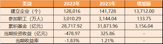 截至2023年末,企业年金基金规模累计约31873.96亿元,较上年末增加了3156.04亿元;覆盖职工数约3144.04万人,较上年末增加133.75万人;覆盖企业141728家,较上年末增长13712家。