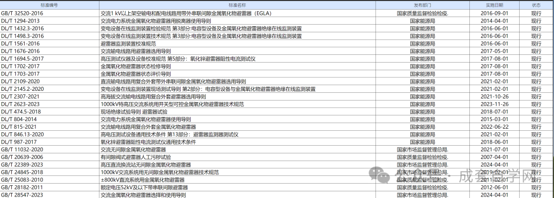 下面是避雷器的相关国家标准号,针对避雷器从设计到试验全过程的规定,包括应用场景要求等等;