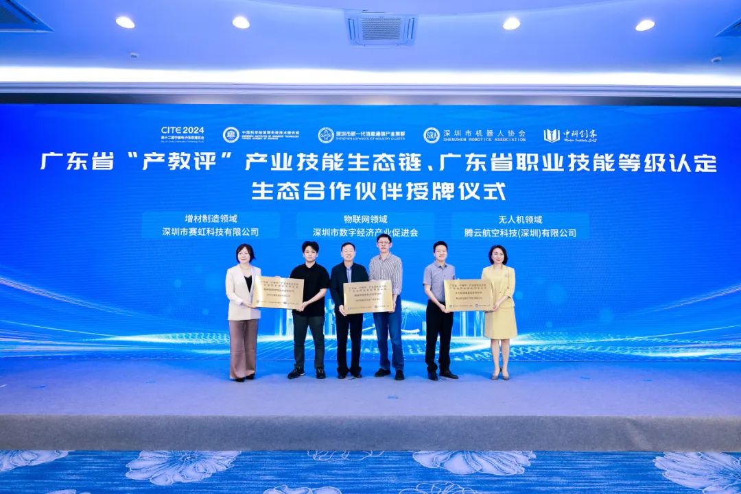 论坛现场,在深圳市新一代信息通信产业集群支持下,由产业集群职业教育基地负责实施的高技能和技术人才的培育载体——“智能机器人产业高技能卓越人才培养项目”进行了专场发布,正式启动多领域职业群建设工作。由深圳市人力资源和社会保障局职业能力建设处处长杨保华等领导为来自机器人与视觉、物联网、无人机和增材制造等技术领域的25名专家、3家单位举行了受聘及授牌仪式。